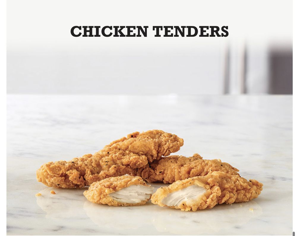 5 crispy chicken tenders served with your choice of dipping sauce. Visit arbys.com for nutritional and allergen information.